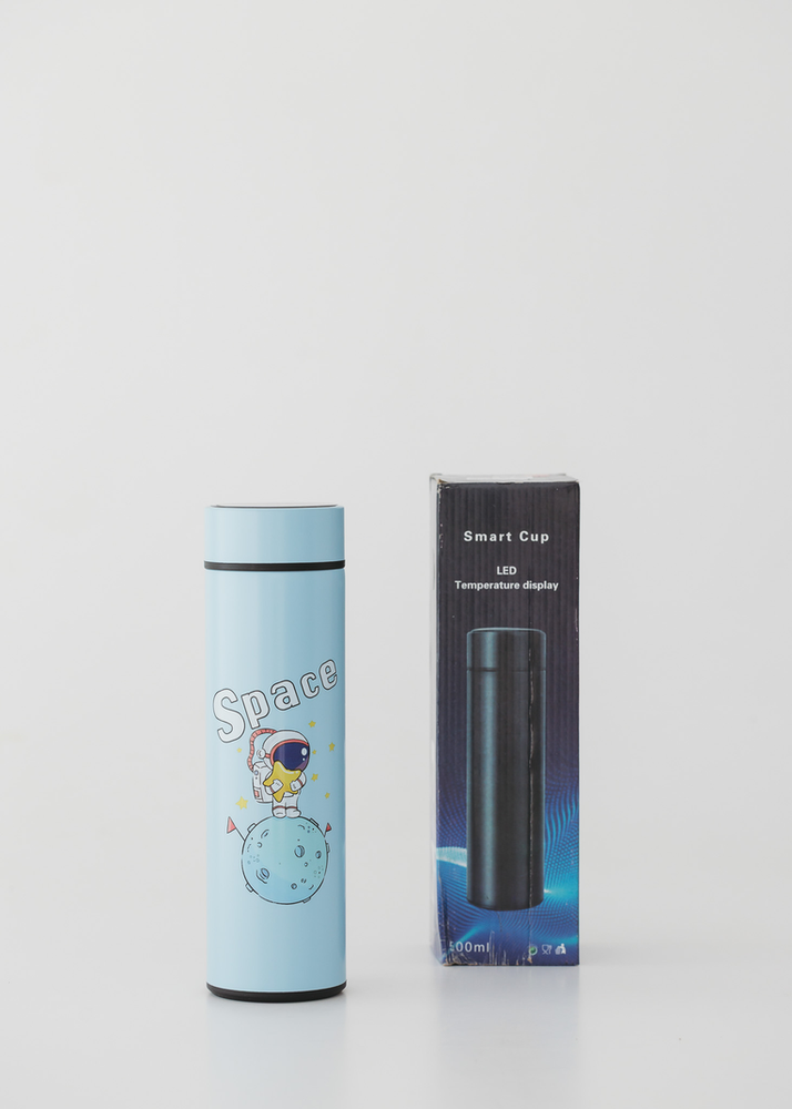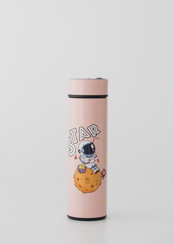 BOTELLA TERMICA ESPACIO CON SENSOR DE TEMPERATURA Y FILTRO DE ACERO. VIENEN SURTIDA DE COLORES Y DIBUJOS.