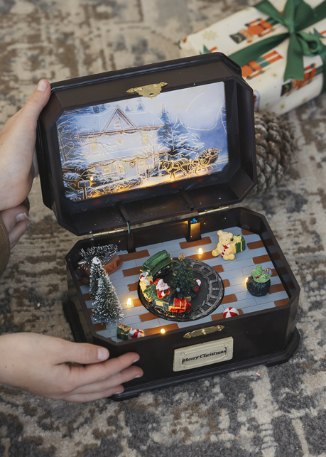 CAJA MUSICAL NAVIDEÑA CON LUZ Y MUSICA. TIENE RECARGA USB Y OPCION DE PILAS. (NO INCLUIDAS)