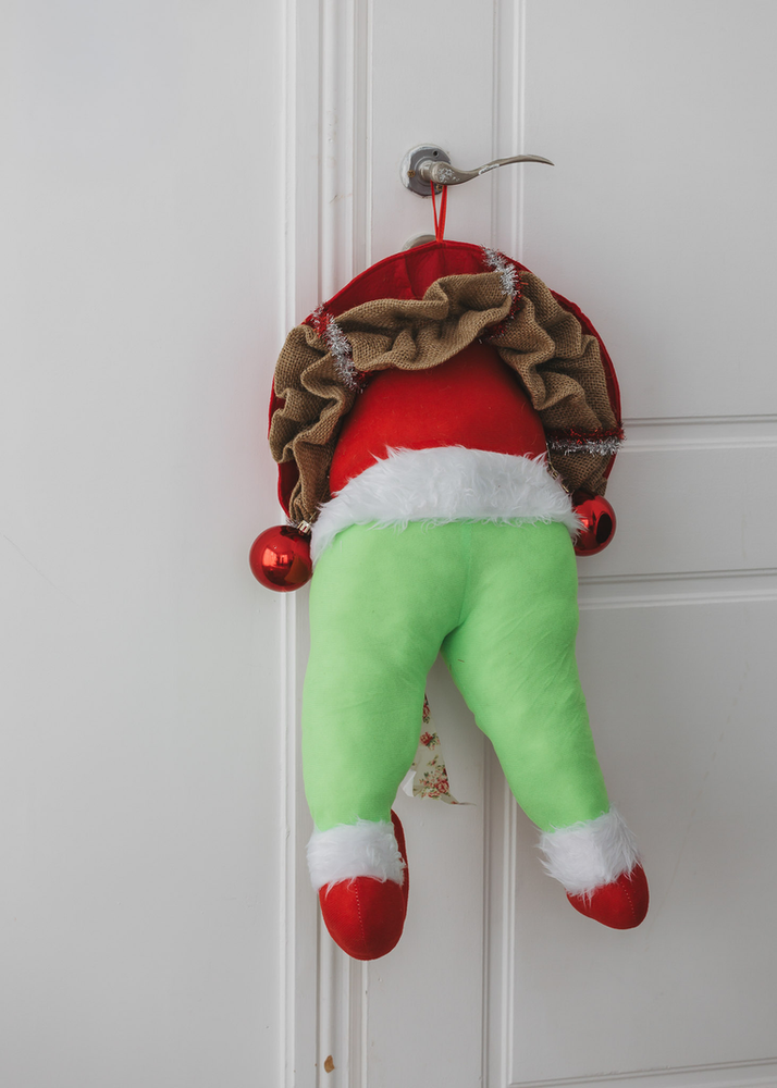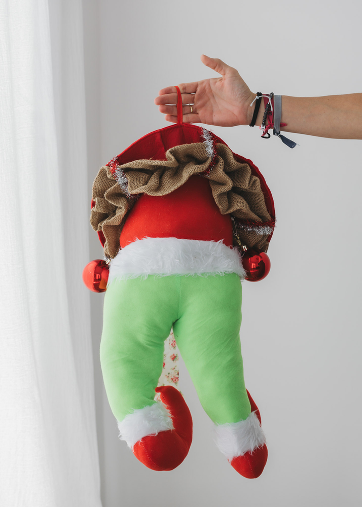 PELUCHE NAVIDEÑO GRINCH PARA DECORAR LA PUERTA DE ENTRADA EN EPOCA NAVIDEÑA. UNICO COLOR.