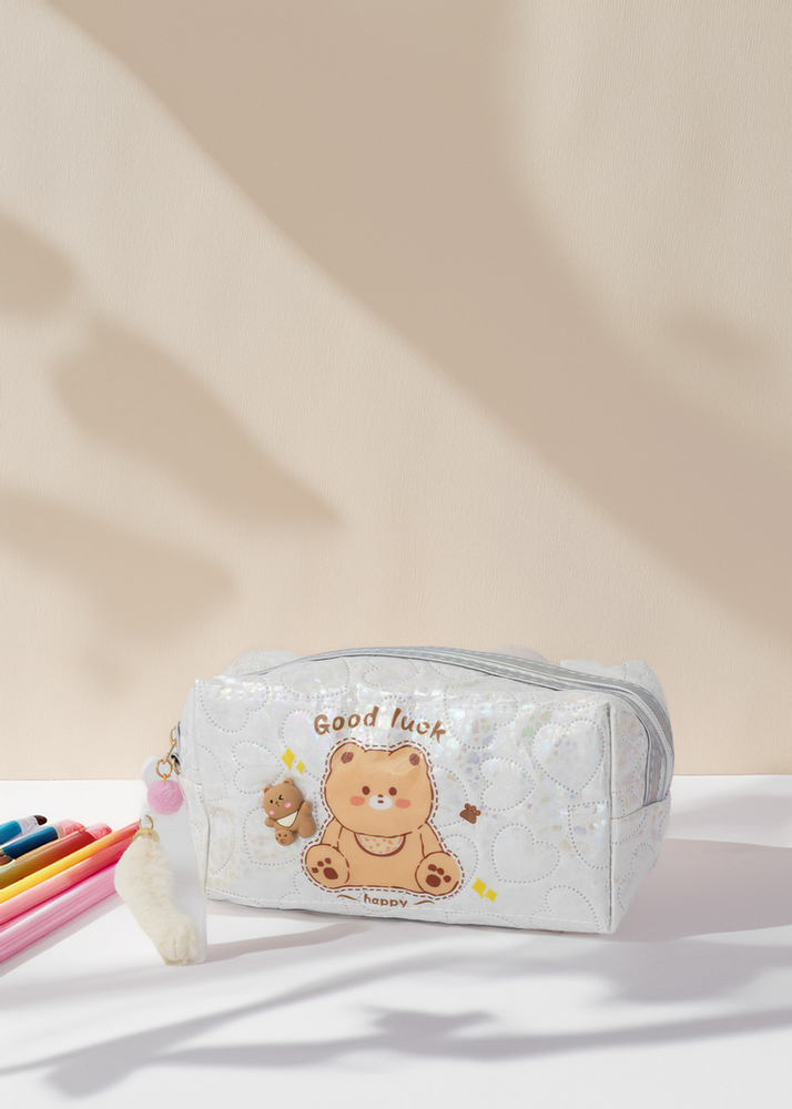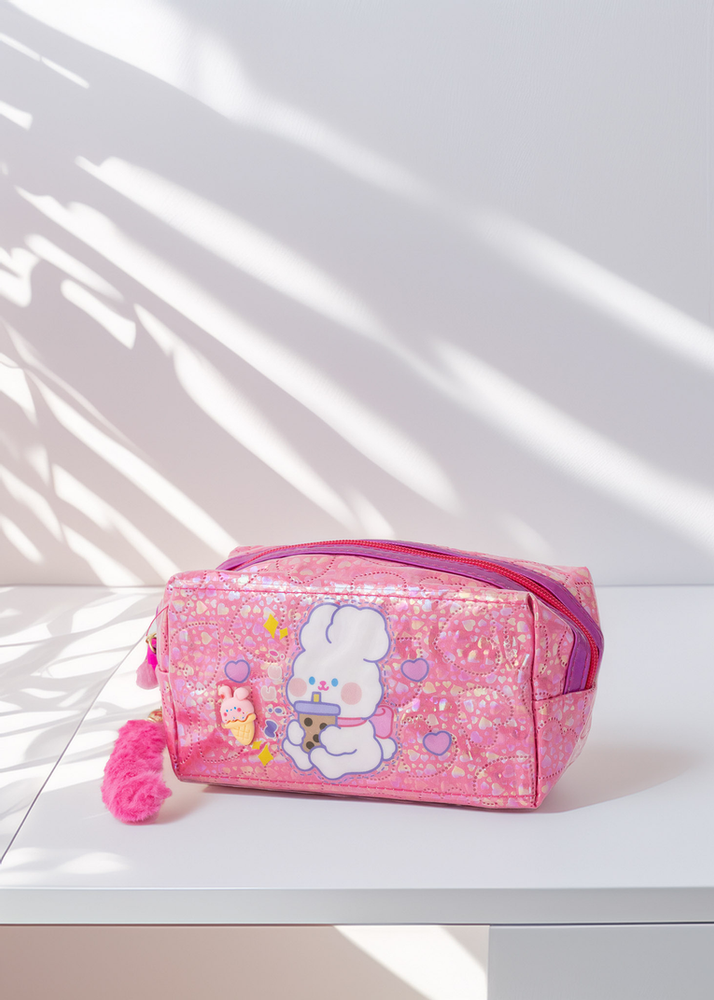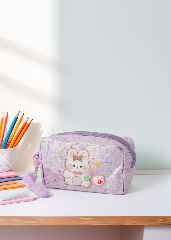 CARTUCHERA NECESER Y PORTACOSMETICOS DE PVC CON DISEÑOS ANIMALITOS. VIENE EN 3 COLORES METALIZADOS.