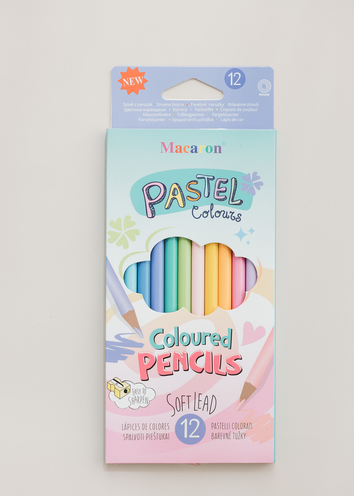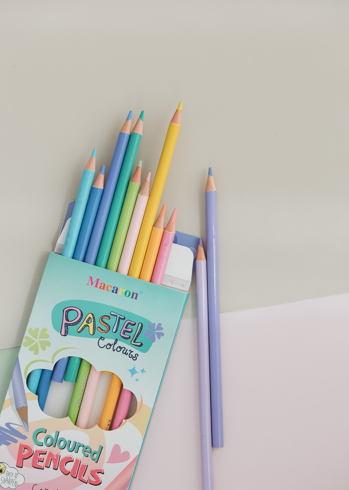 CAJA POR 12 UNIDADES DE LAPICES DE COLORES PASTELES.