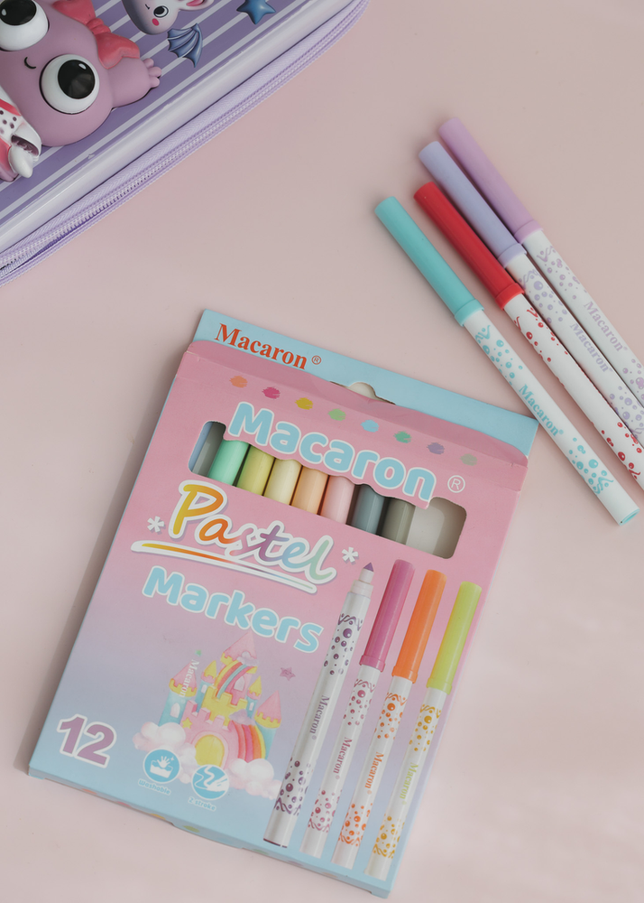 CAJA POR 12 UNIDADES DE MARCADORES COLORES PASTELES.