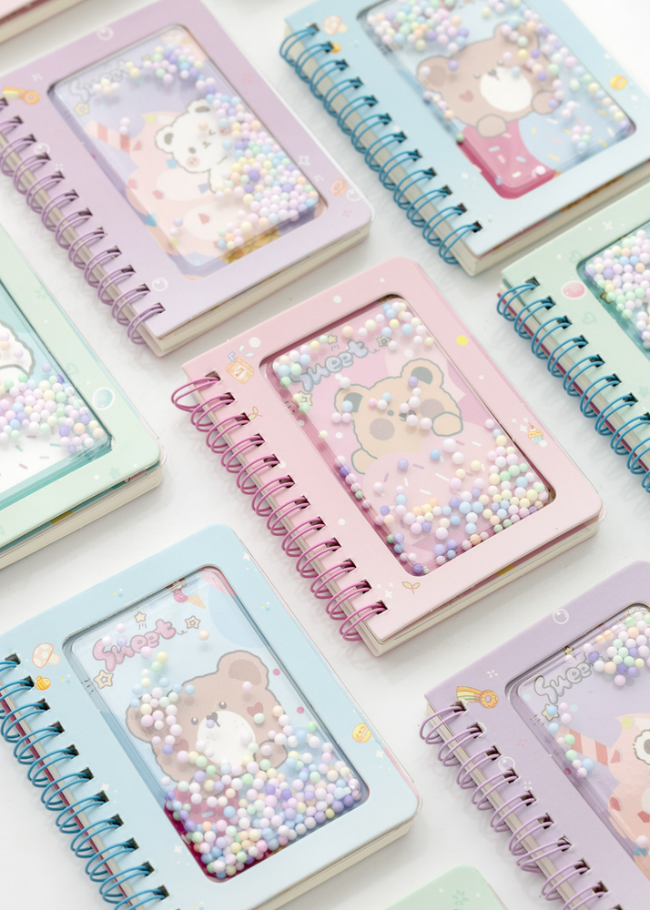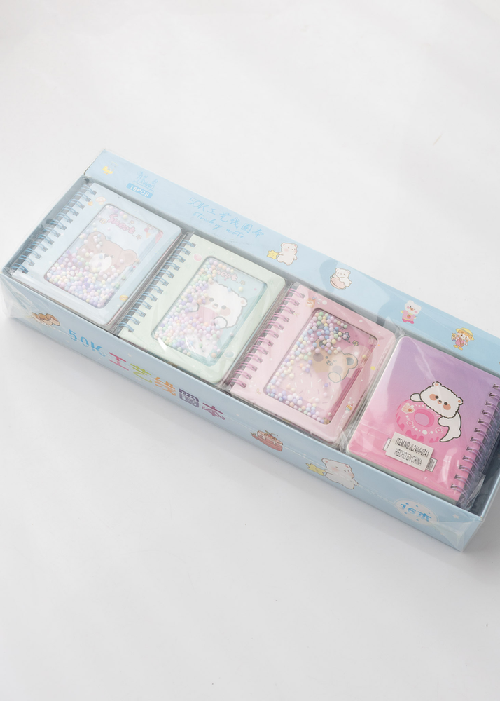 CAJA POR 16 UNIDADES DE ANOTADORES DE 80 HOJAS CON DISEÑOS DE OSITOS. LA CAJA CONTIENE 4 MODELOS.