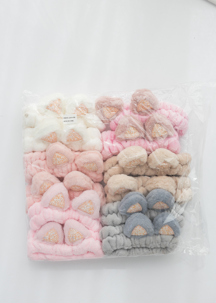 BOLSA POR 12 UNIDADES DE VINCHAS PELUCHITO CON OREJITAS SURTIDAS DE COLORES.