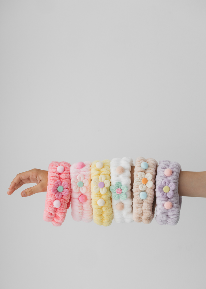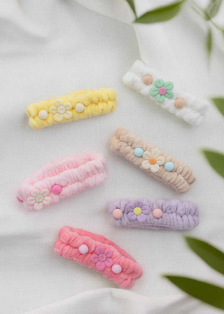 BOLSA POR 12 UNIDADES DE VINCHAS CON DISEÑOS FLOR SURTIDAS DE COLORES. EN CADA BOLSA VIENEN 6 COLORES SURTIDOS.