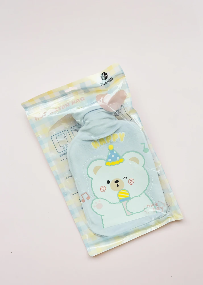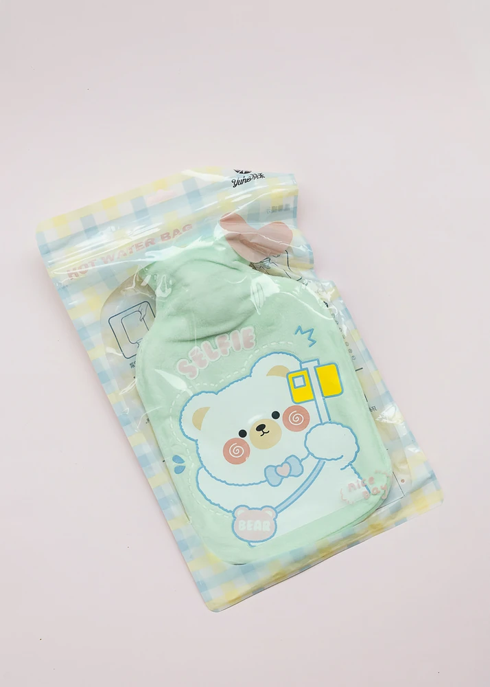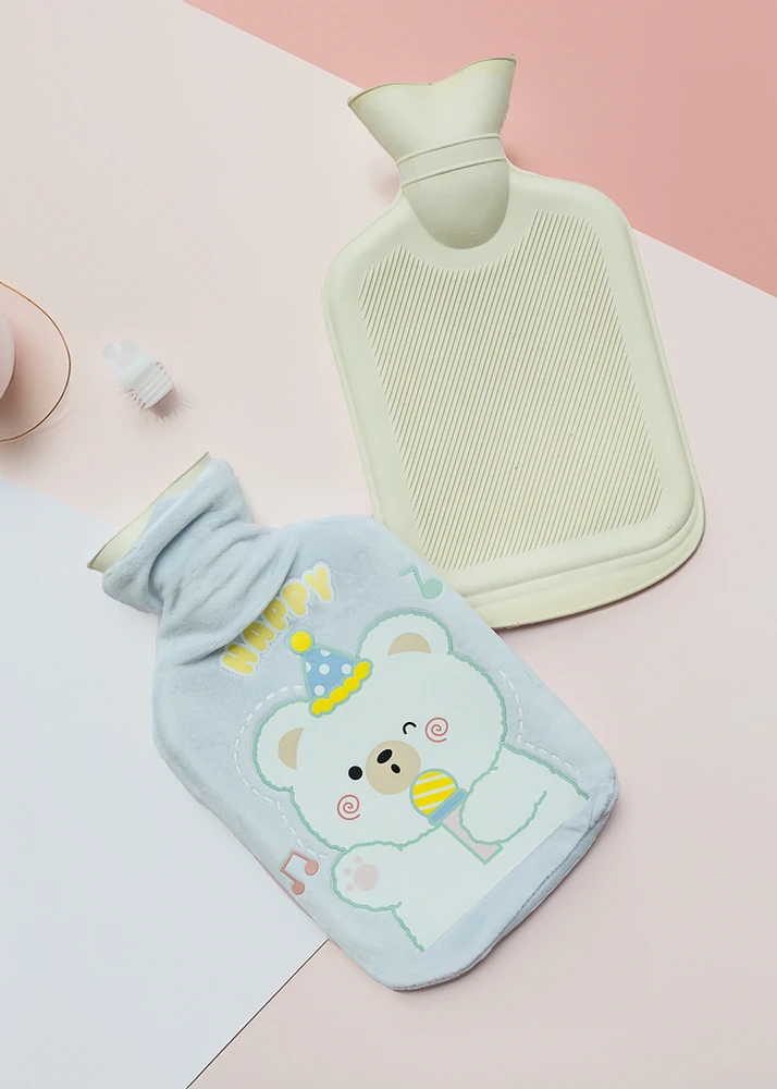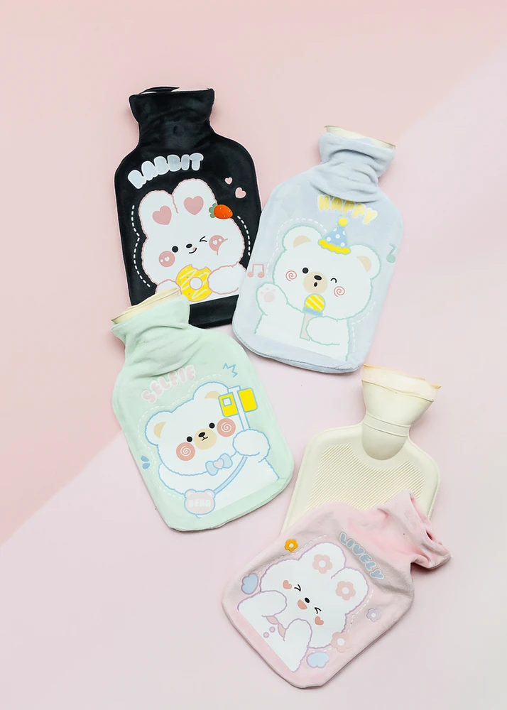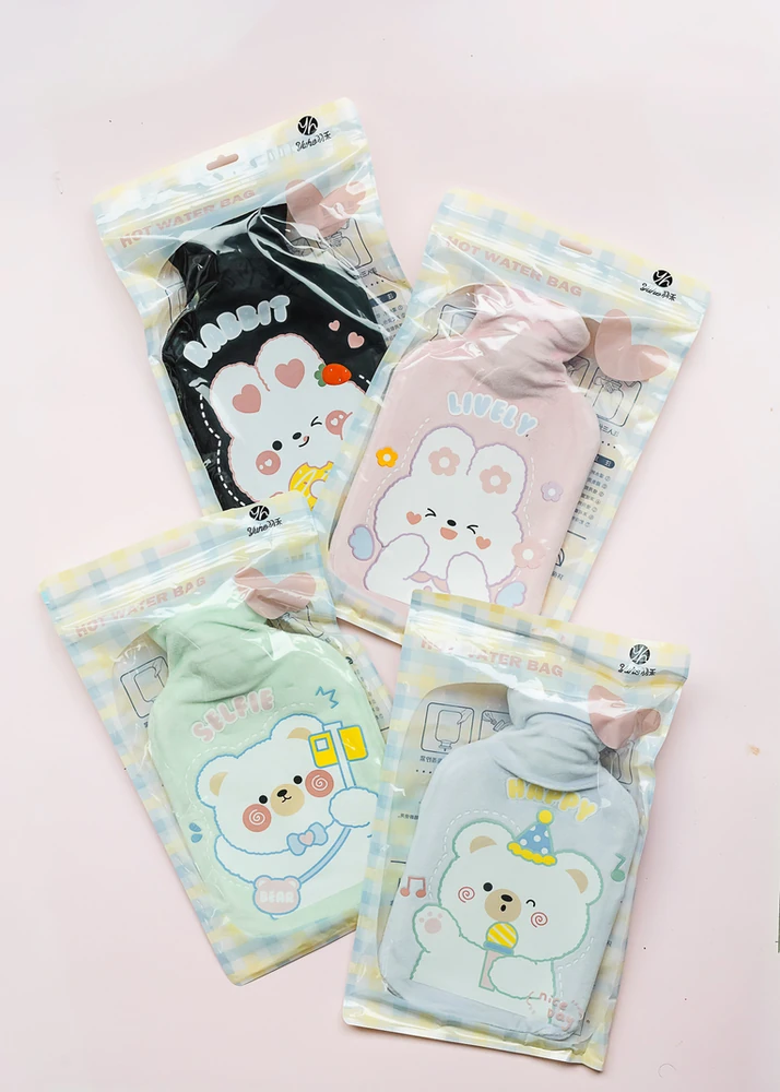 BOLSA DE AGUA CALIENTE DE GOMA CON DISEÑOS OSITOS. VIENE EN 4 COLORES.