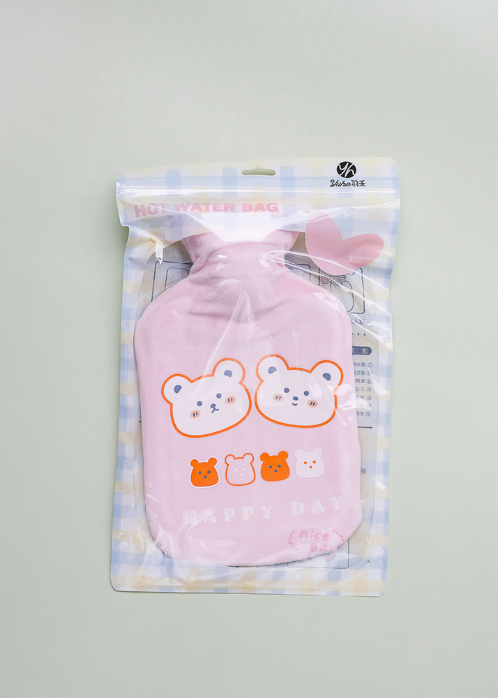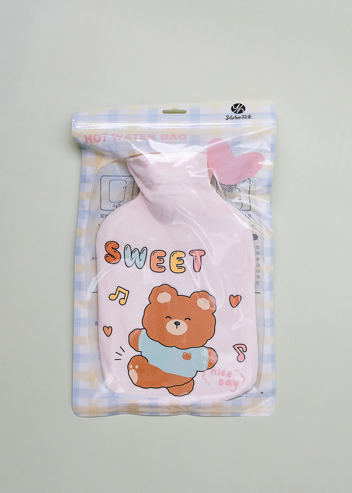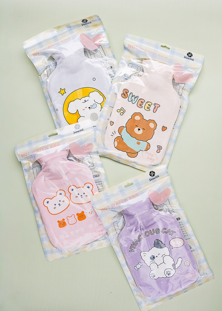 BOLSA DE AGUA CALIENTE DE GOMA CON FUNDAS DE COLORES CON DISEÑOS DE OSITOS. SE VENDE SURTIDO.