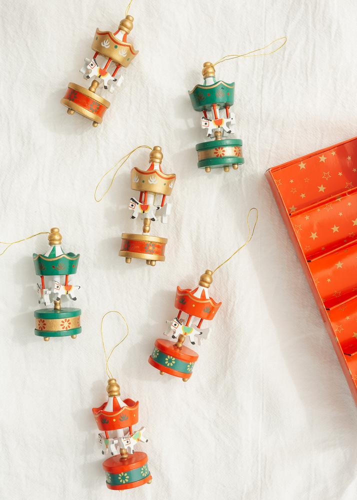CAJA X 6 DECO MDF CALESITAS. VIENE EN ROJO VERDE DORADO