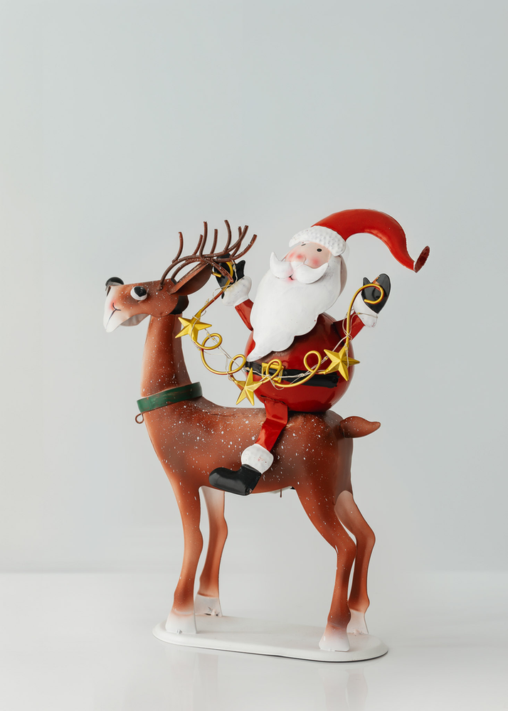 DECORACION DE METAL SANTA EN RENO CON LUZ . (NO INCLUYE PILA) . UNICO MODELO.