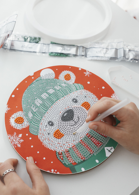 KIT DIAMONT ART NAVIDEÑOS. INCLUYE UNA LAMINA , UTENSILLOS, DIAMANTES Y UN MARCO PLASTICO PARA EXHIBIR LA OBRA FINAL.