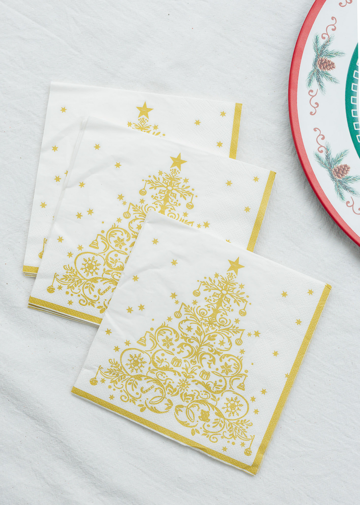 BOLSA /20 SERVILLETAS DOBLE ARBOL DORADO.