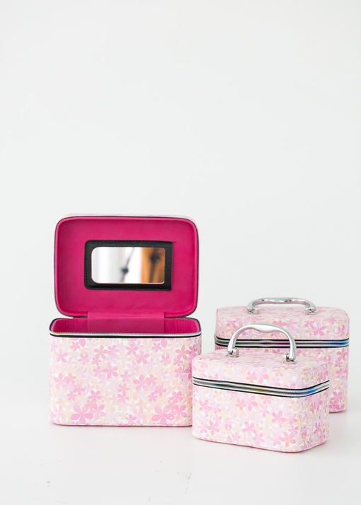 SET POR 3 UNIDADES DE VALIJAS ORGANIZADORAS DE MAKE UP , SKINCARE Y ESMALTES CON ESPEJO INCLUIDO EN LAS 3. VIENE EN DOS COLORES.