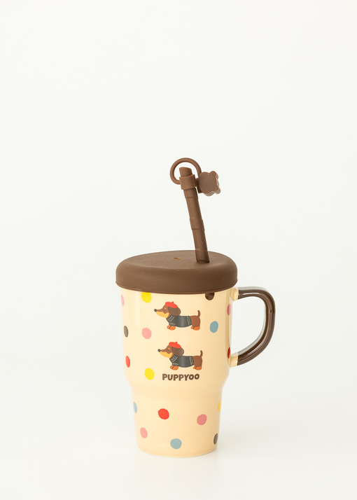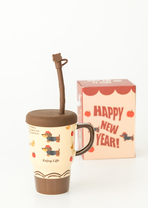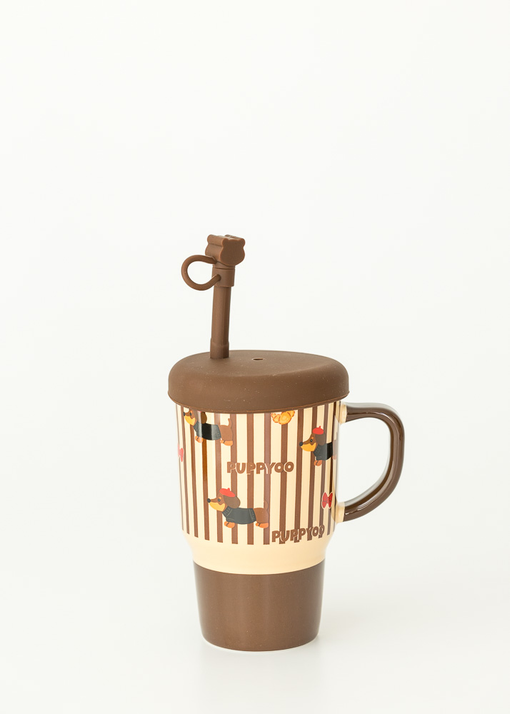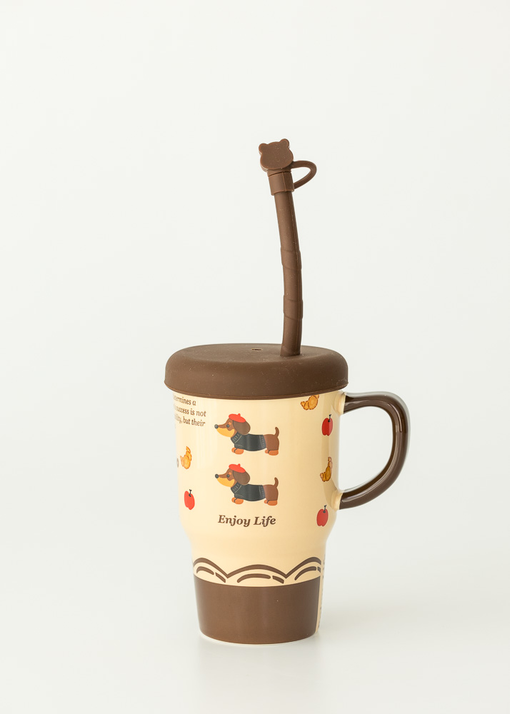 TAZA DE CERAMICA CON TAPA Y SORBETE DE SILICONA. VIENE EN 4 MODELOS DISTINTOS.