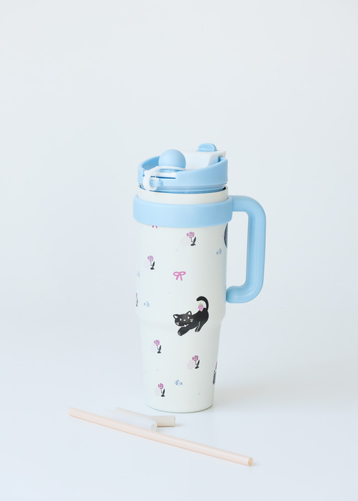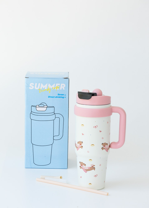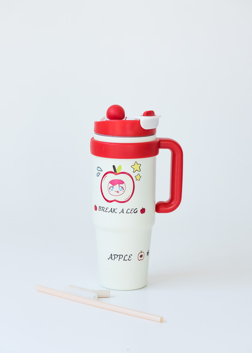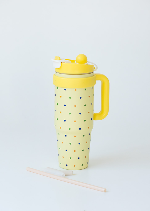 VASO TERMICO CON SORBETE DE PLASTICO , DOBLE PICO Y TAPA PARA EVITAR DERRAMES. VIENE EN COLORES SURTIDOS.