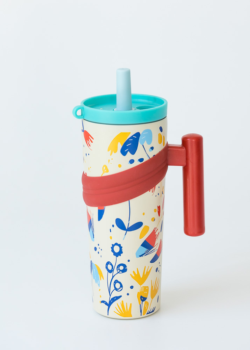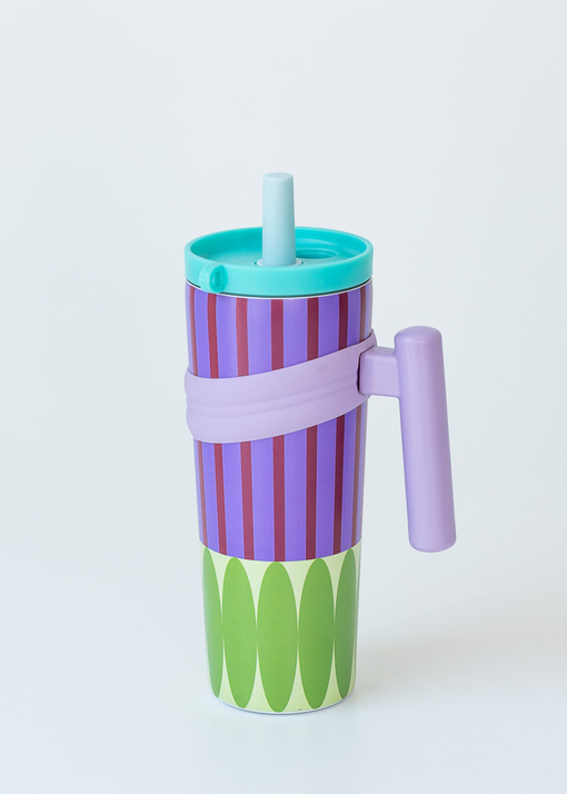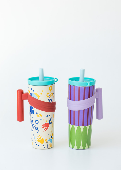 VASO TERMICO CON MANIJA, SORBETE Y TAPA PARA EVITAR DERRAMES. VIENE EN DOS COLORES.