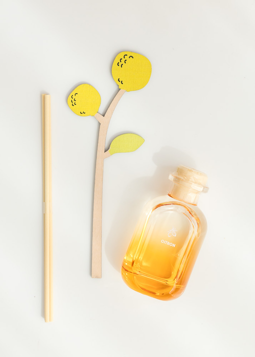 DIFUSOR DE AROMA (CITRON) CON VARILLAS Y UNA FLOR DECORATIVA. UNICO MODELO.