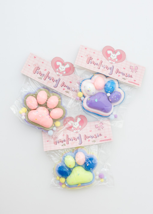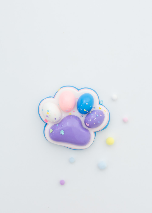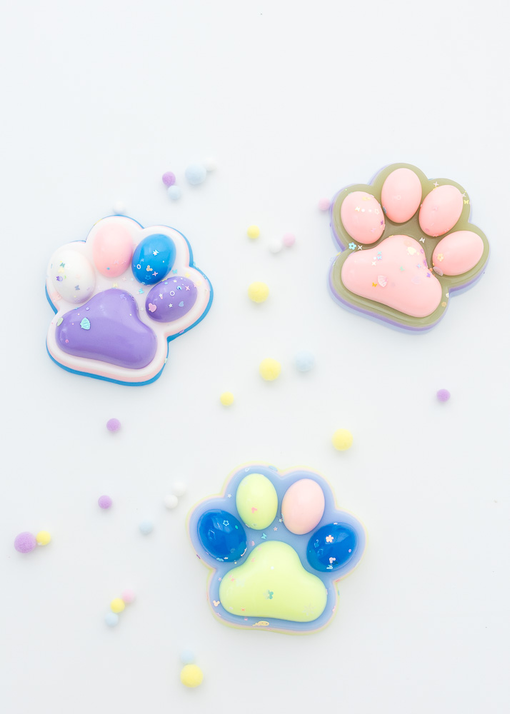 SQUISHY EN FORMA DE HUELLITAS CON ACCESORIOS. VIENE EN COLORES SURTIDOS.
