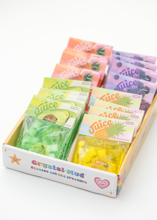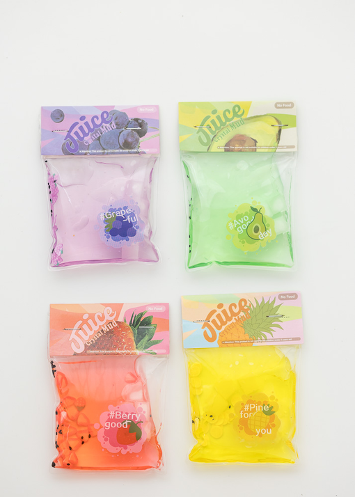 CAJA POR 16 BOLSITAS DE SLIME FRUTALES. VIENE EN 4 COLORES DISTINTOS POR CAJA.