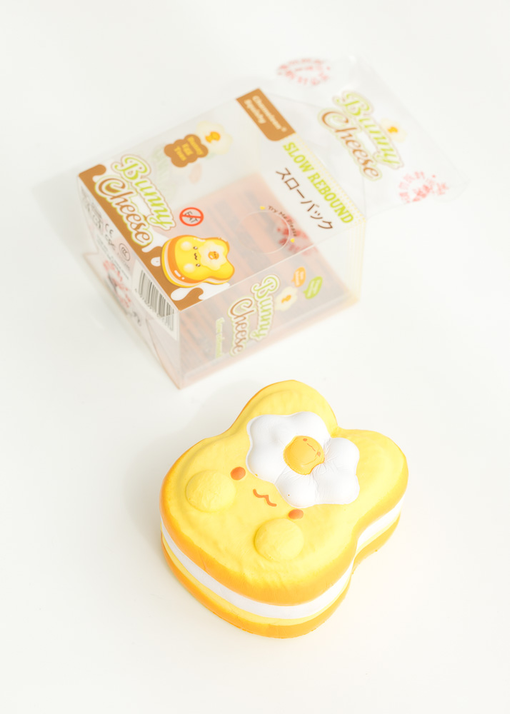 CAJA POR 12 UNIDADES DE SQUISHIES "BUNNY CHEESE" CON AROMA Y CAJA PLASTICA INDIVIDUAL.