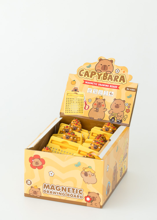 CAJA POR 24 UNIDADES DE MINI PIZARRAS CON LAPIZ MAGNETICO Y LLAVERITO DE CAPYBARA. UNICO DISEÑO.