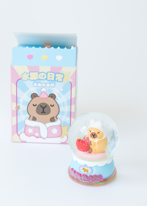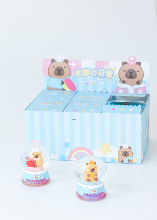 CAJA POR 6 UNIDADES DE CAJITAS SORPRESAS CAPIBARA. TRAE UNA BURBUJA DE VIDRIO CON LUZ Y UNA CARTA DEL MODELO. HAY 6 MODELOS DISTINTOS.