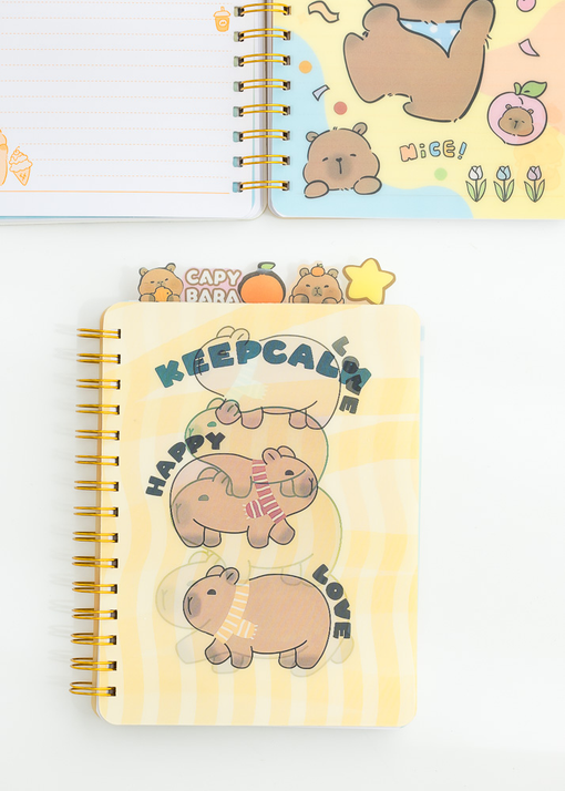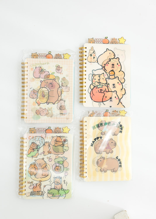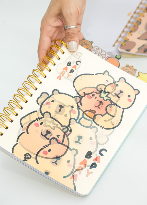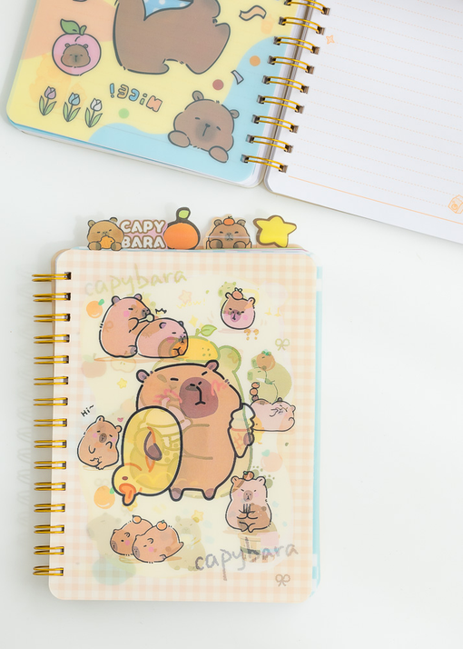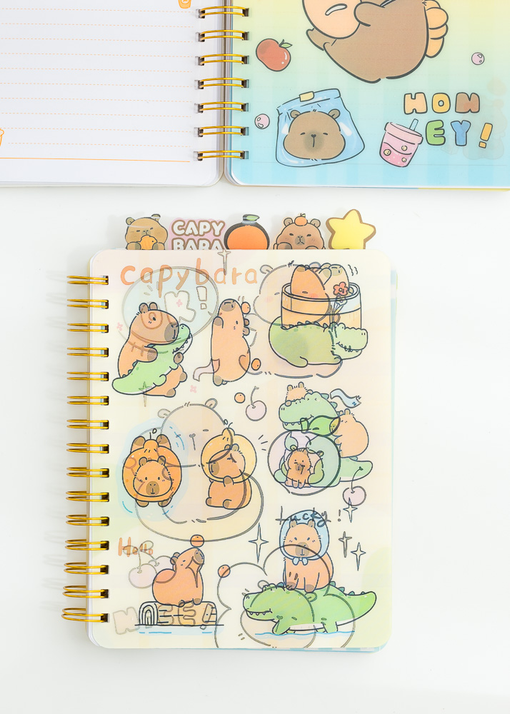 CUADERNO HOLOGRAFICO DE 120 HIJAS / 80G CON DIVISIONES. DISEÑOS SURTIDOS DE CAPYBARA.