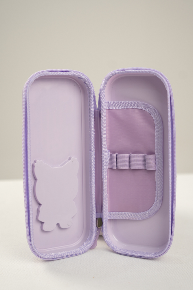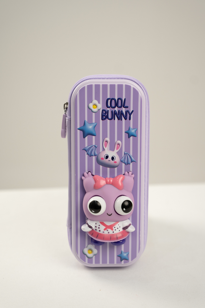 CARTUCHERA CON CIERRE , TAPA RIGIDA Y UN SQUISHY EN LA PARTE SUPERIOR DE COLL BUNNY. . VIENE EN DOS COLORES (VIOLETA-ROSA)