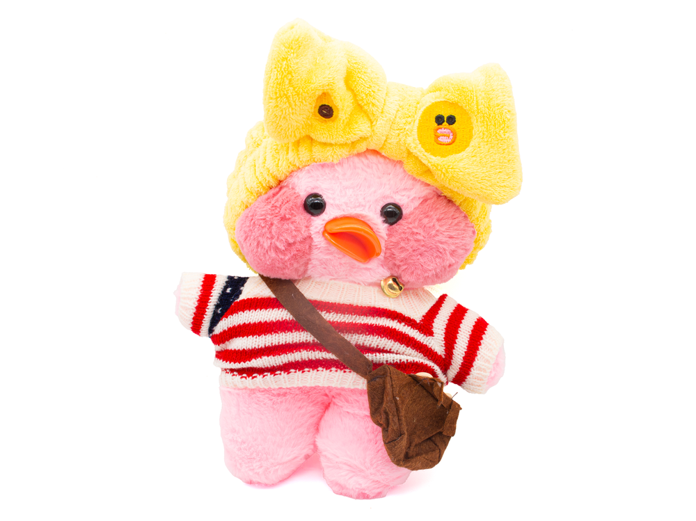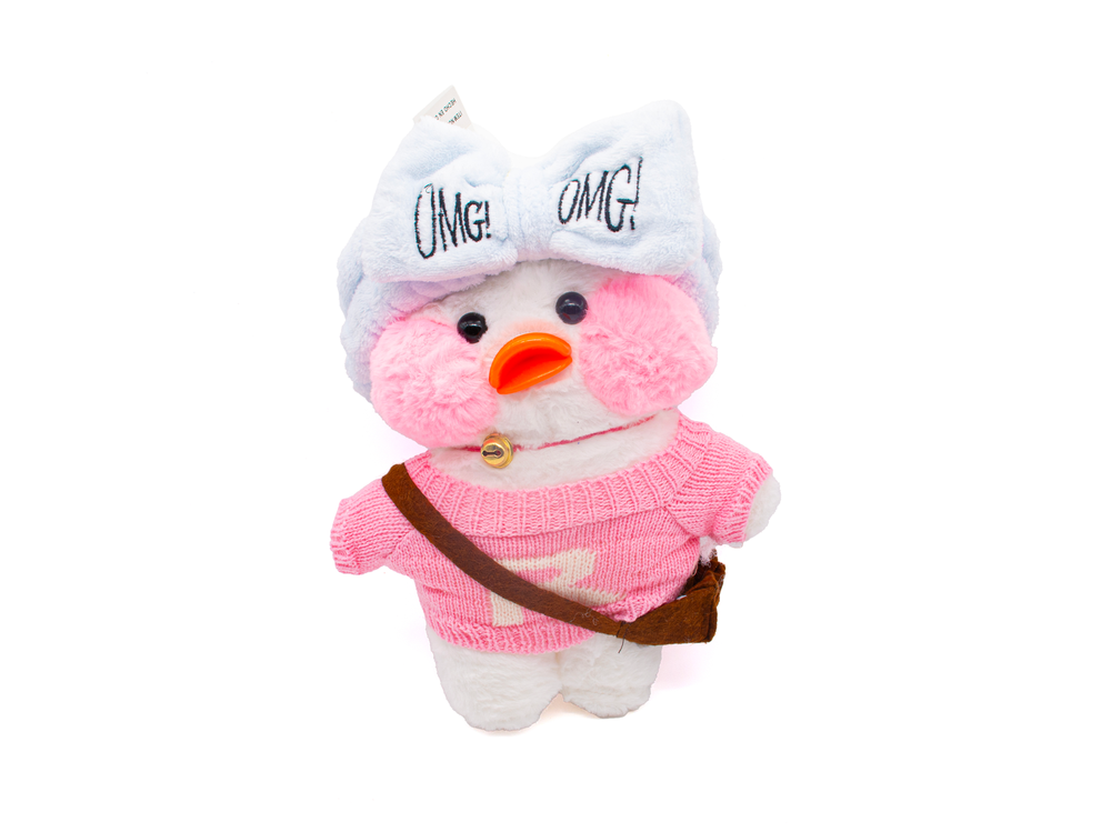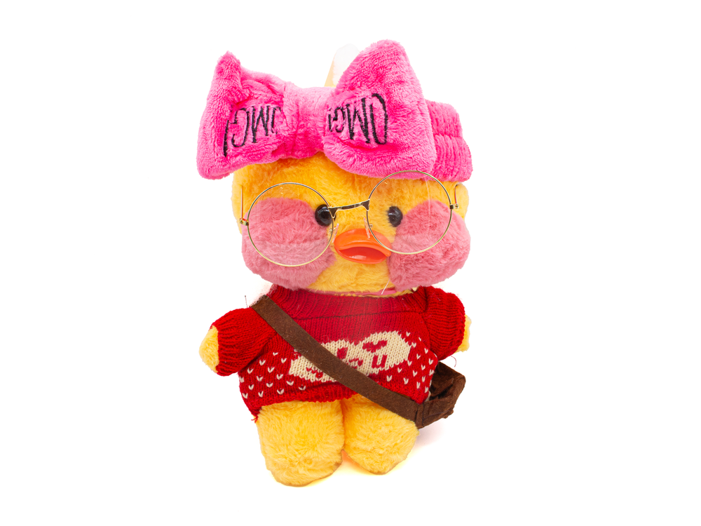 PELUCHE DE PATO LALAFANFAN CON VINCHA Y ANTEOJOS COMO ACCESORIOS. VIENEN EN COLORES SURTIDOS.