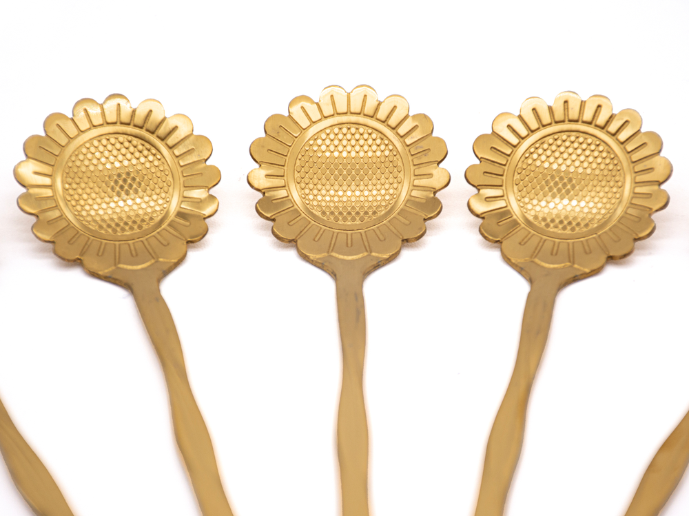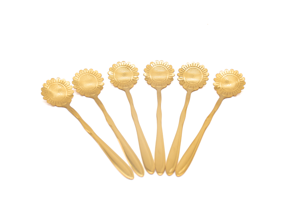 SET POR 6 UNIDADES DE CUCHARITAS DE TE EN FORMA DE FLOR DE METAL. UNICO COLOR (DORADO)
