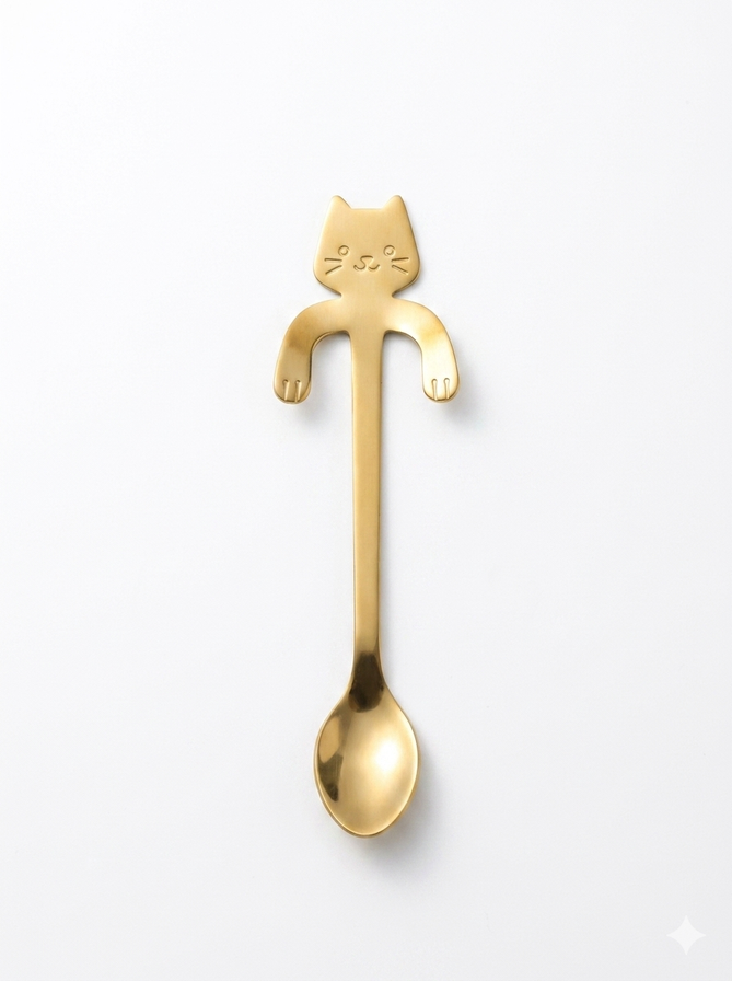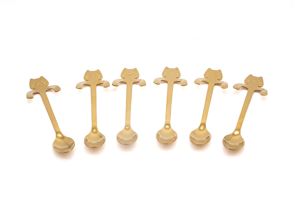 SET POR 6 UNIDADES DE CUCHARITAS DE TE CON FORMA DE GATITO. SOLAMENTE VIENE EN DOLOR DORADO.