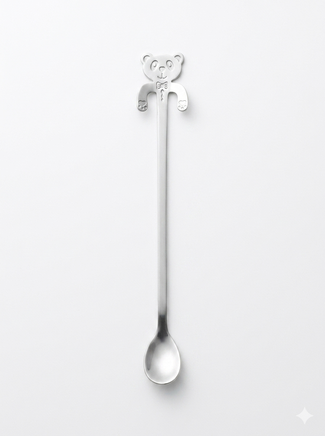 SET POR 6 UNIDADES DE CUCHARAS DE METAL CON DISEÑO OSITO. VIENE SOLO EN COLOR PLATEADO.