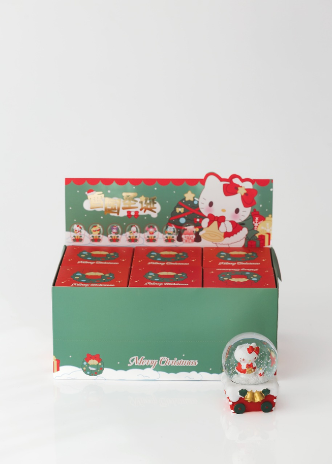 CAJA POR 6 UNIDADES DE BOLAS DE NIEVE COLECCIONABLES CON DISEÑOS DE PERSONAJES DE HELLO KITTY.