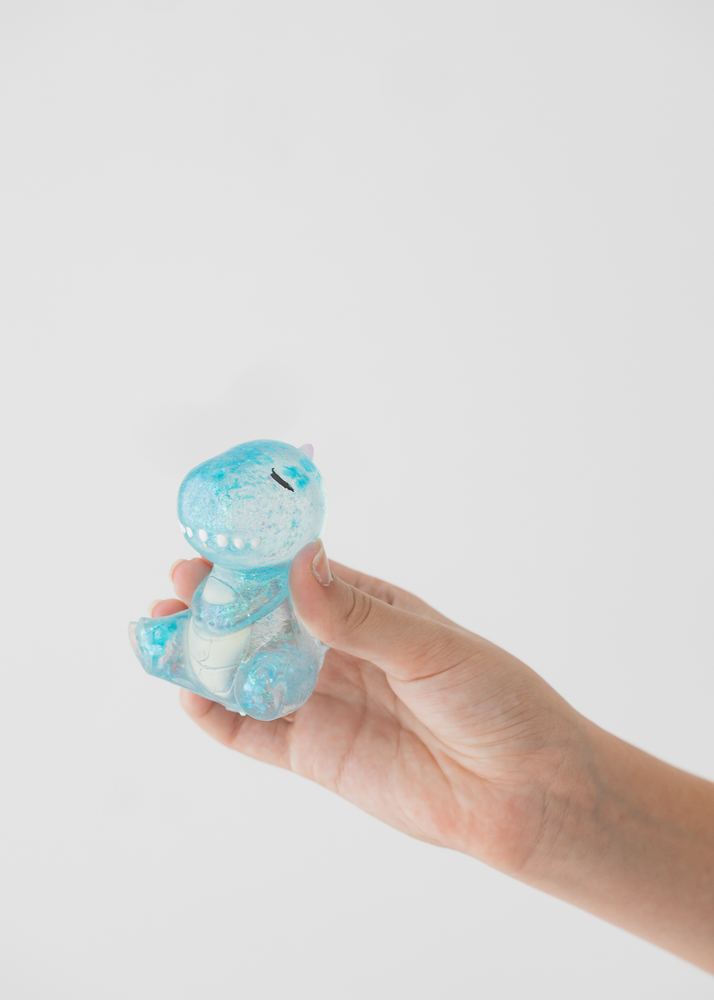 SQUISHY EN FORMA DE DINOSAURIO SURTIDOS DE COLORES. VIENE CON PACKAGING PARA COLGAR.