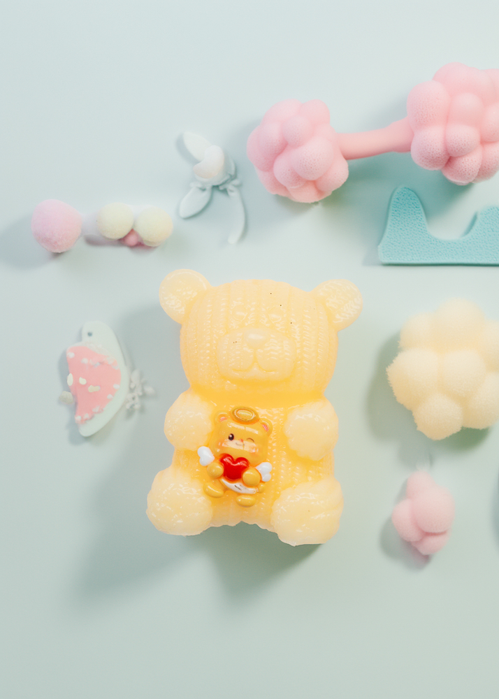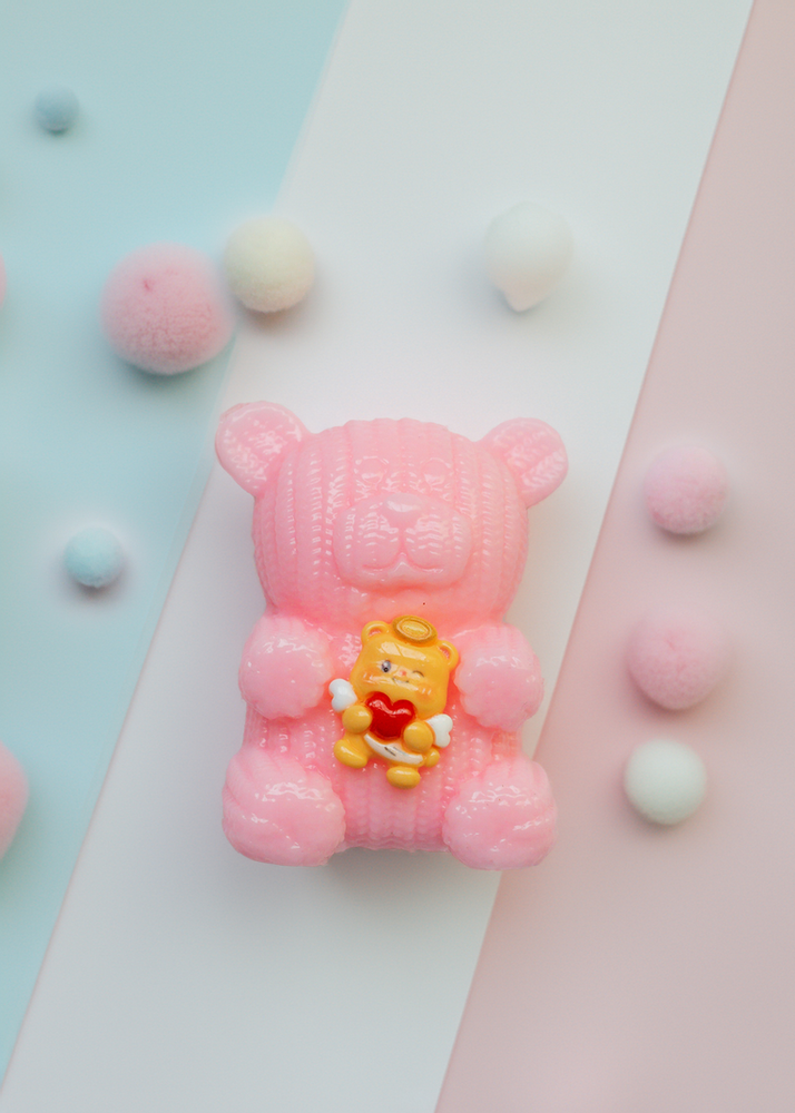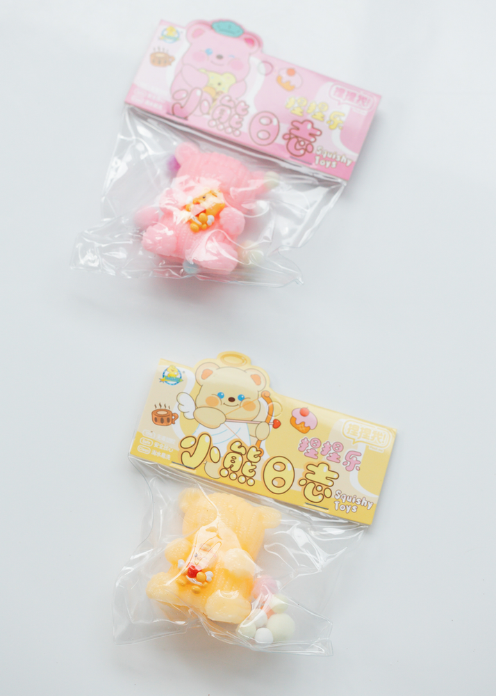 SQUISHY EN FORMA DE OSITO CON BOLITAS Y PACKAGING PARA COLGAR. VIENE EN DOS COLORES.