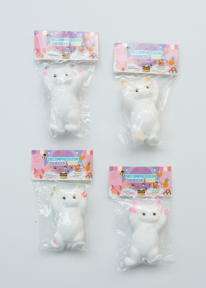 SQUISHY EN FORMA DE GATITO CON PACKAGING PARA COLGAR. SOLO EN COLOR BLANCO.
