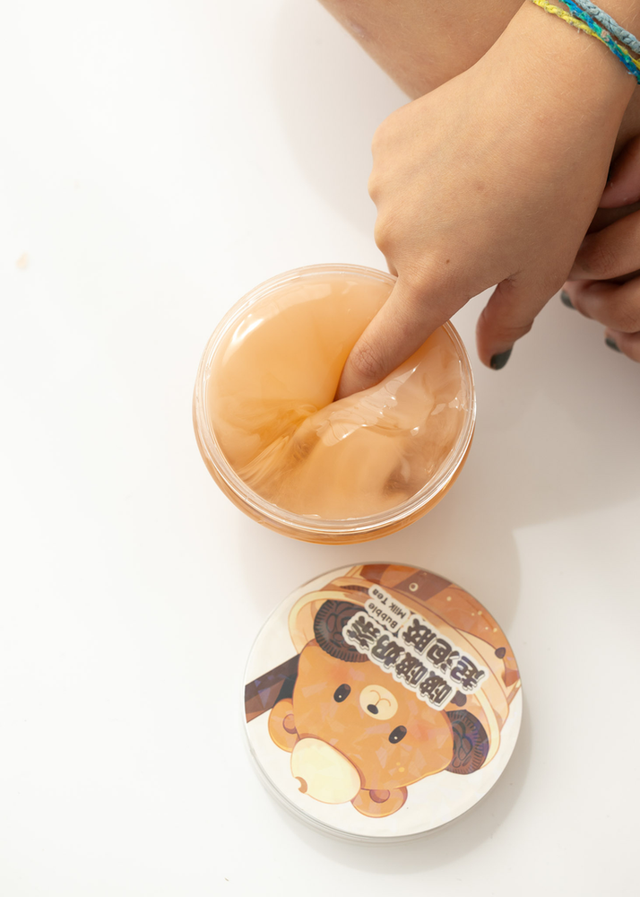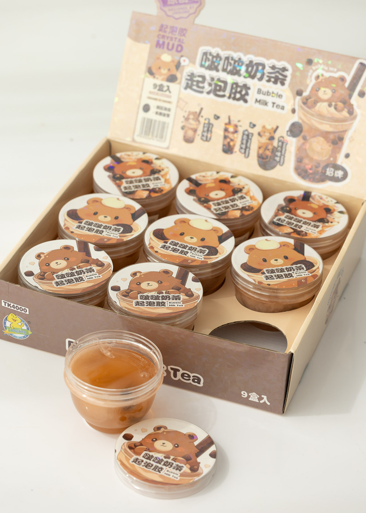 CAJA POR 9 UNIDADES DE SLIME CRISTAL EN POTES PLASTICOS CON TAPA A ROSCA. DISEÑO OSITO.