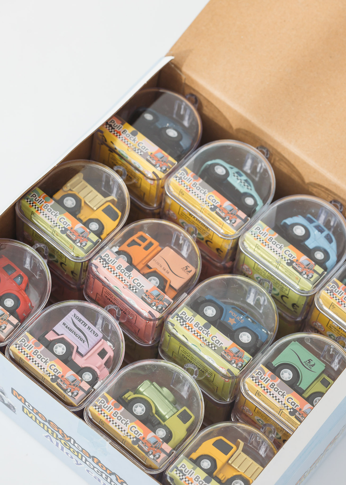 SET POR 24 UNIDADES DE AUTITOS EN CAJA CON ACCESORIO EN FORMA DE VUELTA AL MUNDO PARA ARMAR. UNICO MODELO.