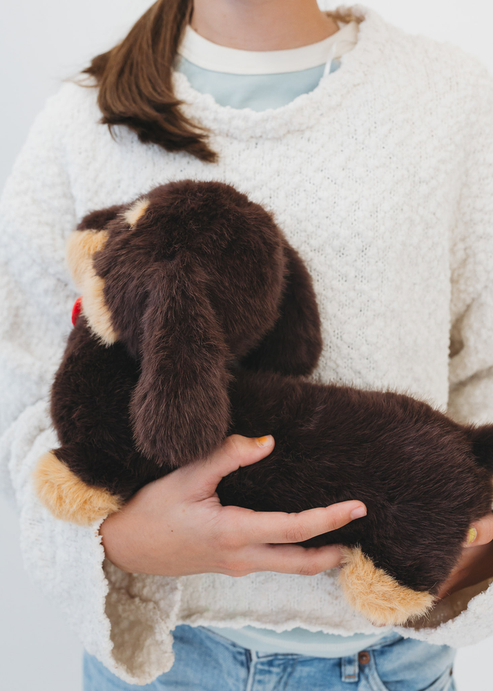 PELUCHE EN FORMA DE PERRO SALCHICHA. UNICO COLOR.