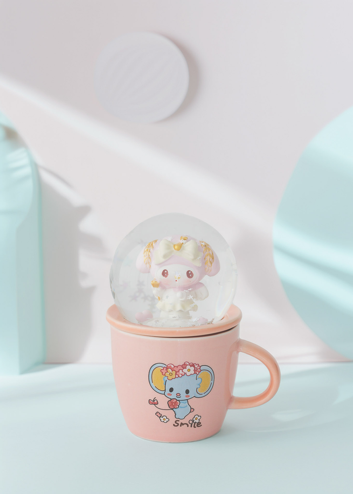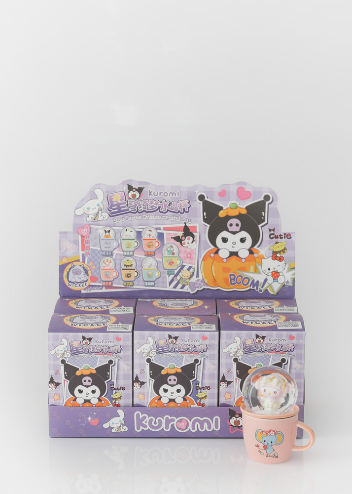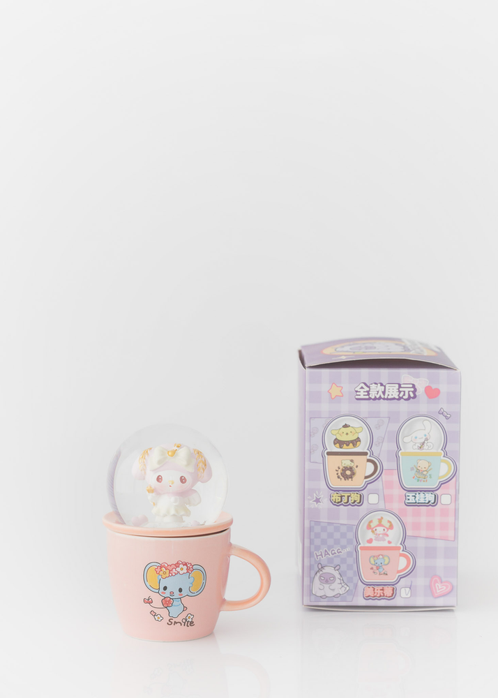 CAJA POR 6 UNIDADES DE BURBUJAS Y TACITA DE CERAMICAS CON DISEÑOS COLECCIONABLES DE LOS PERSONAJES DE SANRIO.