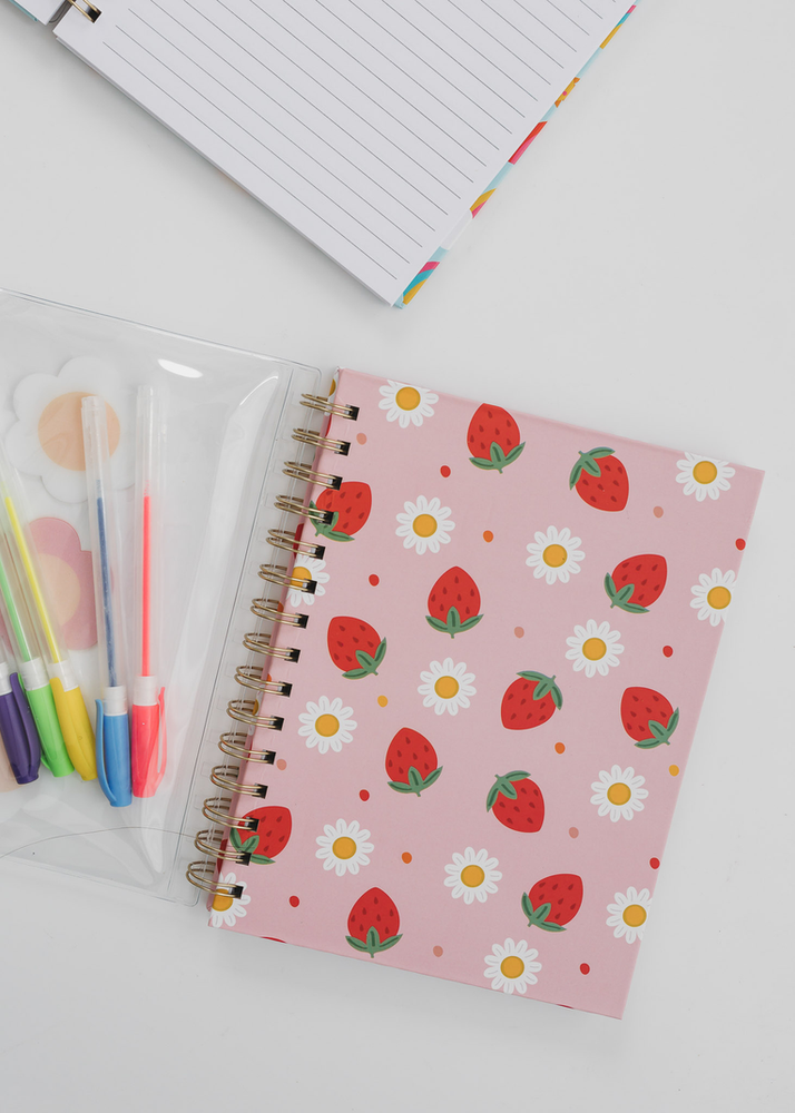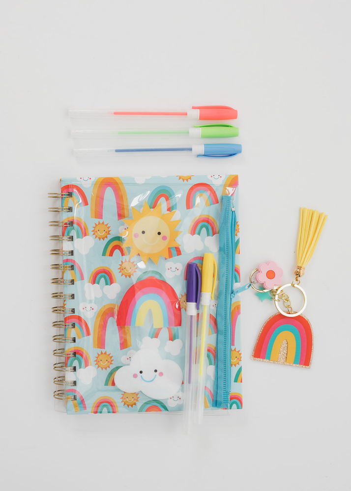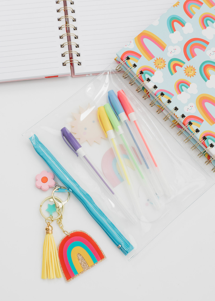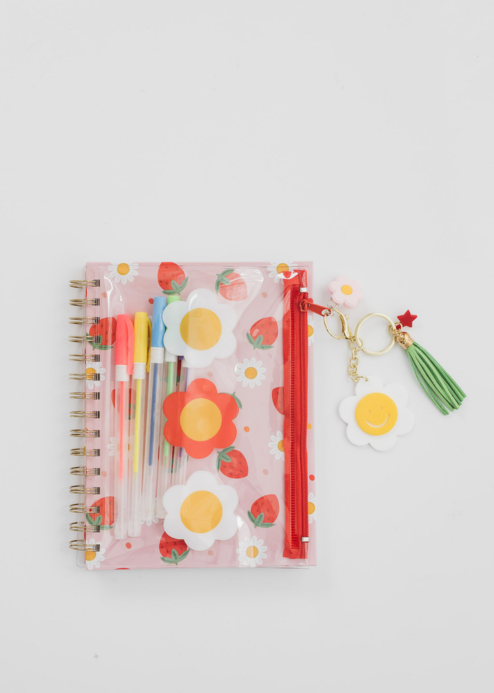 SET DE CUADERNO + CARTUCHERA CON LLAVERO + SET DE LAPICERAS DE COLORES. VIENEN SURTIDOS EN 3 COLORES.