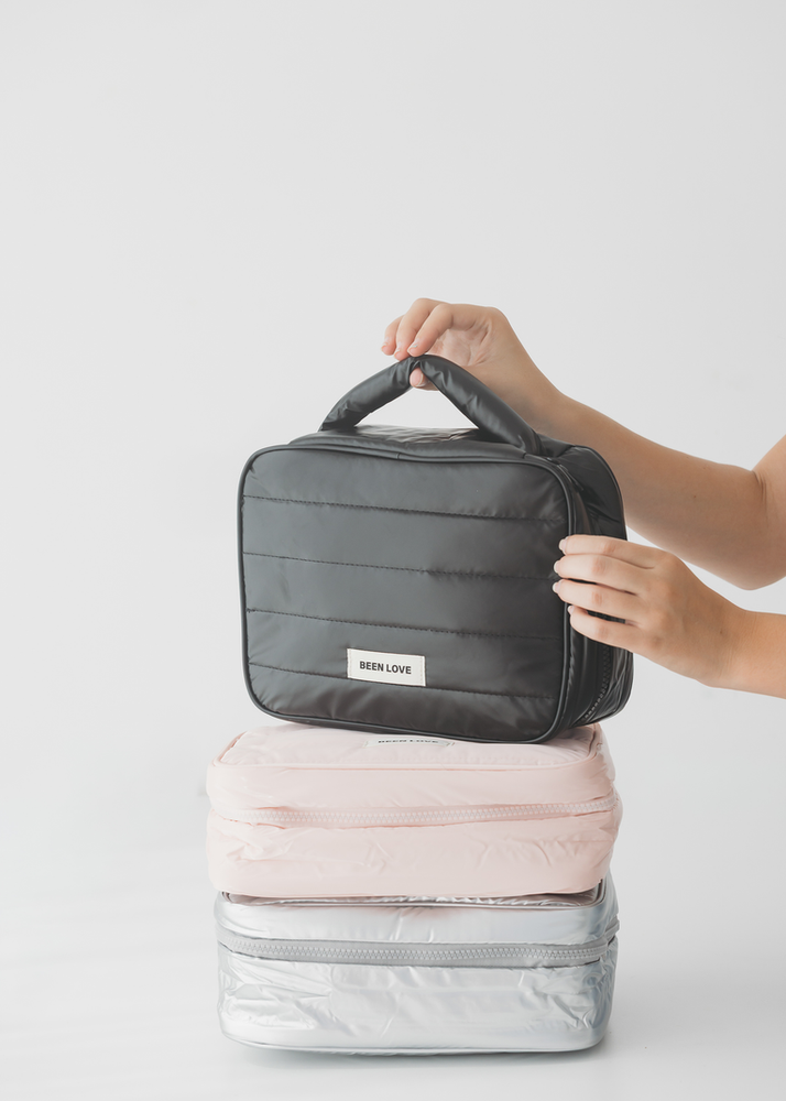 PORTA COSMETICO CON CIERRE Y MANIJA. VIENE EN 3 COLORES.