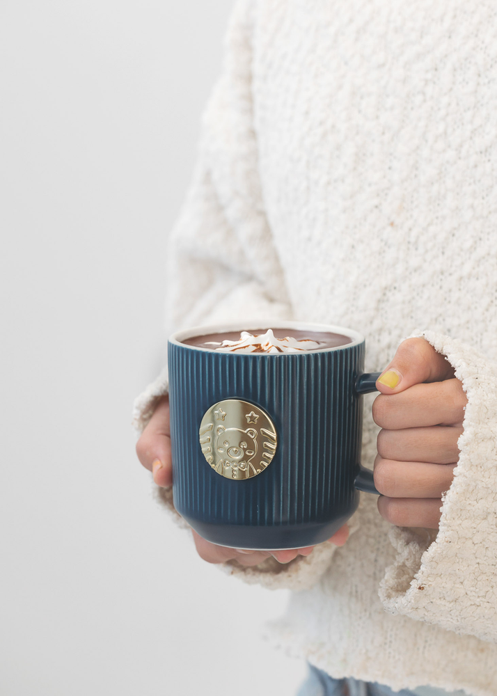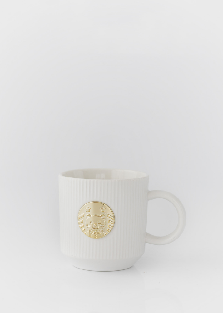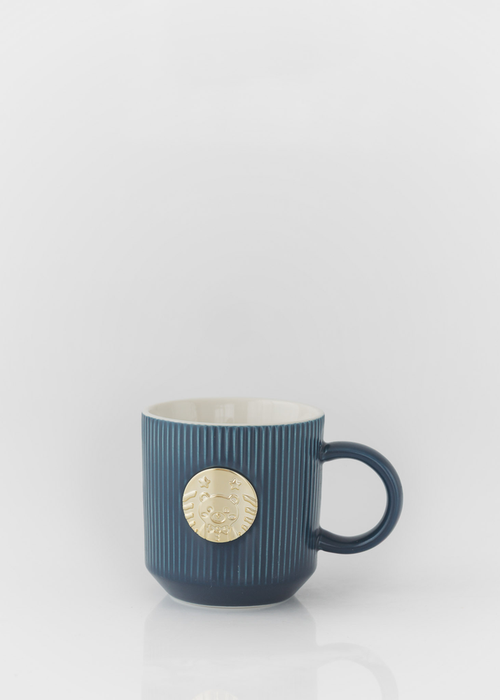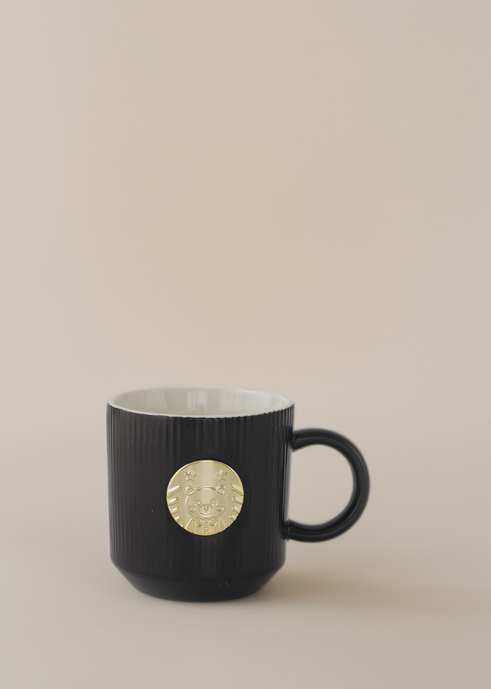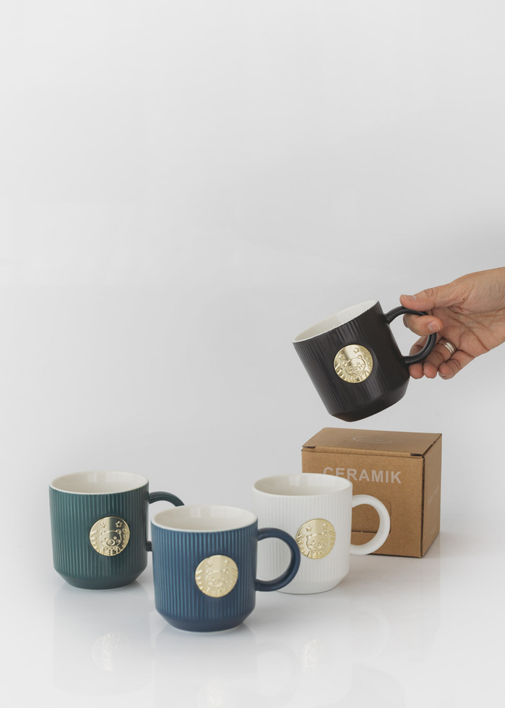 TAZA DE CERAMICA CON DETALLE DORADO. VIENE EN 4 COLORES SURTIDOS.