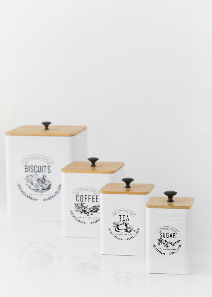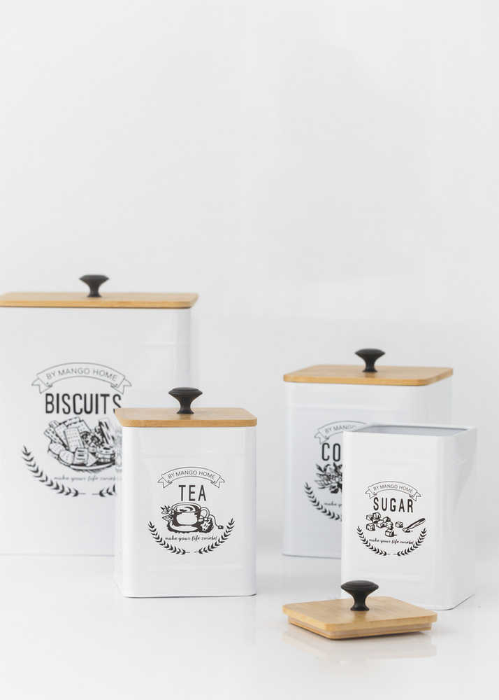 SET POR 4 UNIDADES DE LATAS CON TAPA DE BAMBU. SOLO EN COLOR BLANCO.