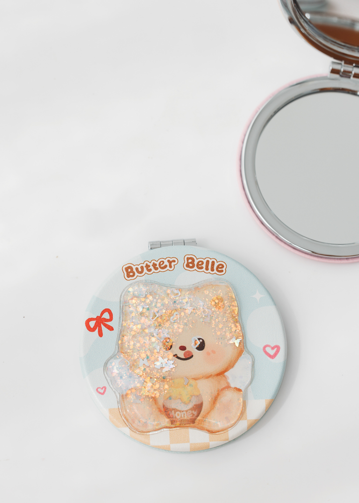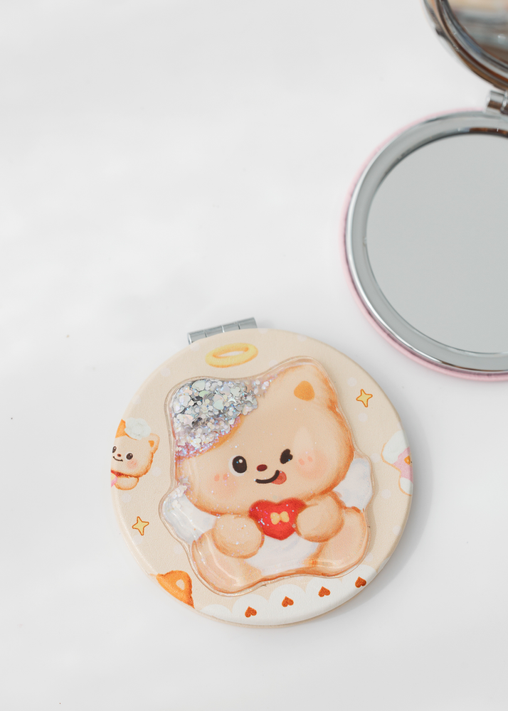 CAJA POR 12 UNIDADES DE ESPEJITOS DE CARTERA CON DISEÑOS DE OSITOS.