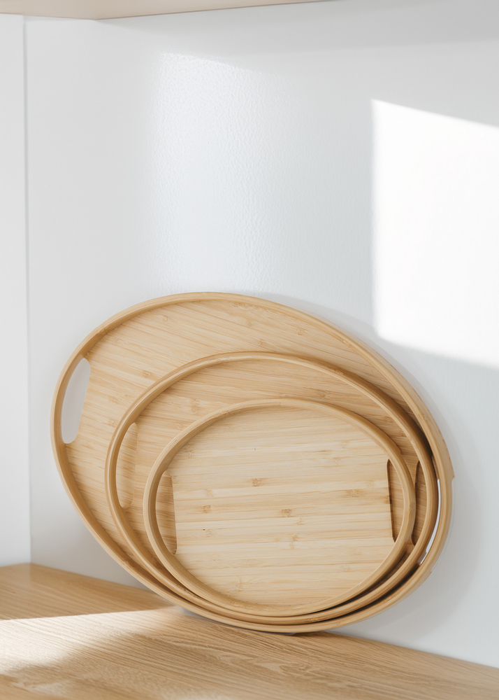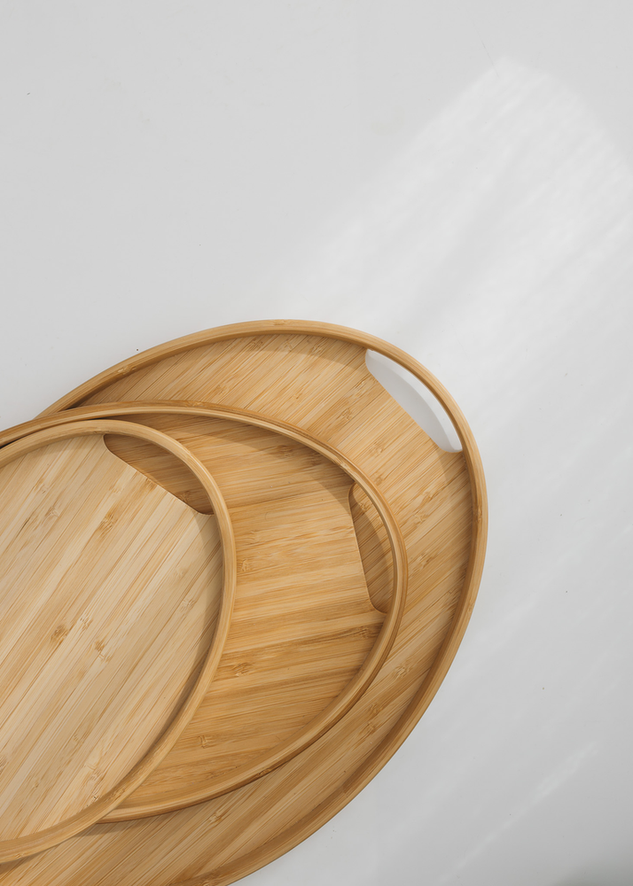 SET X 3 UNIDADES DE BANDEJAS DE BAMBU. UNICO MODELO.