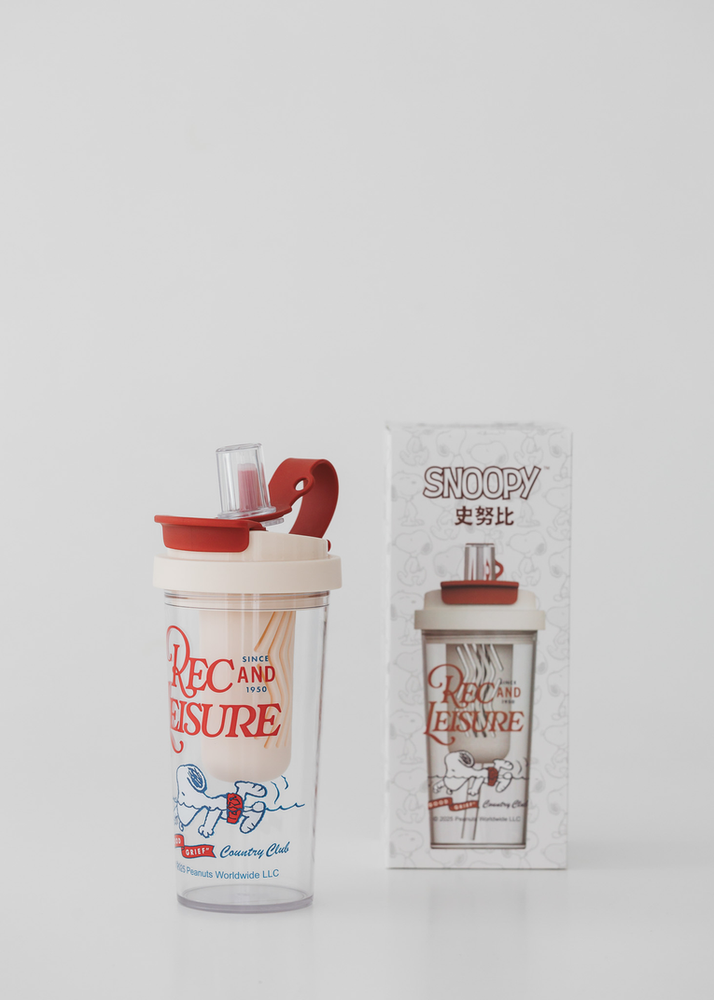 BOTELLA PLASTICA CON DOBLE PICO. TRAE TAPA A ROSCA PARA QUE NO SE DERRAME NADA Y EN EL INTERIOR UN ACCESORIO PARA LA FRUTA. VIENE EN DOS COLORES.