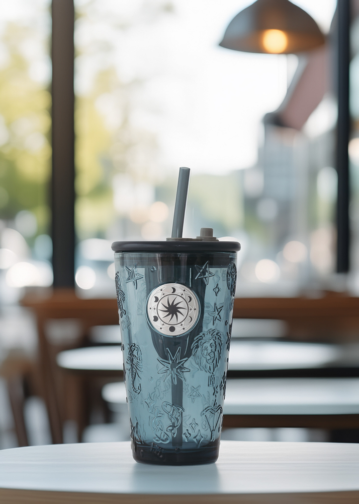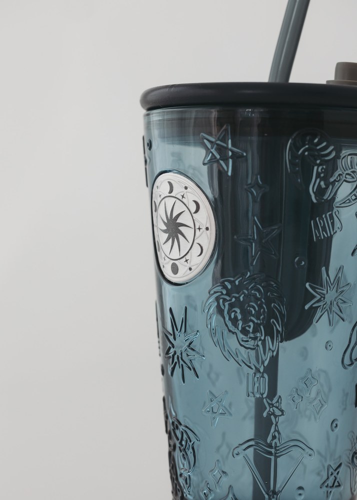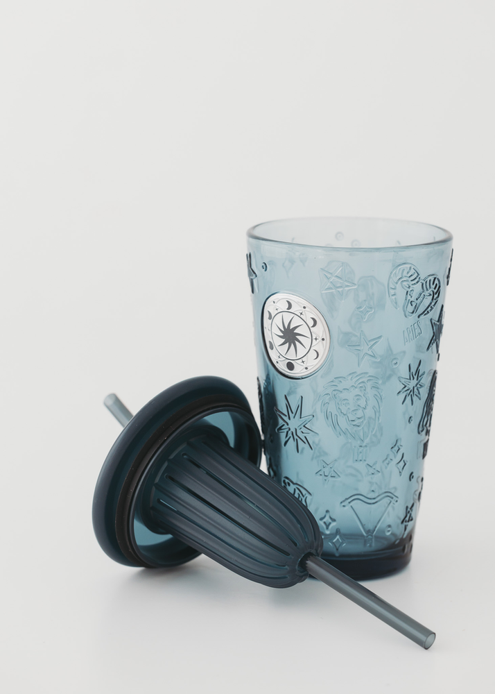 VASO DE VIDRIO CON SORBETE Y ACCESORIO PARA PONER FRUTAS. VIENE EN UN SOLOR COLOR CON DISEÑO DE LOS SIGNOS DEL ZODIACO.