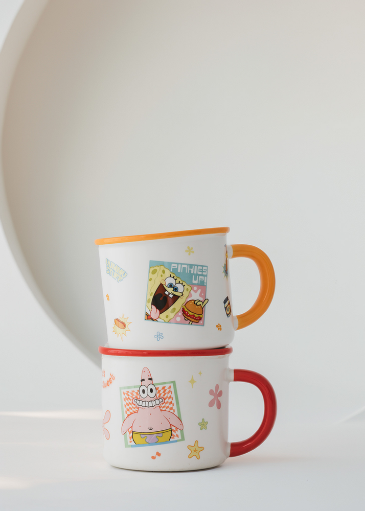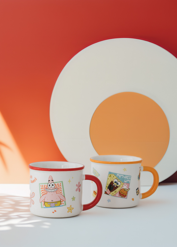 TAZA DE CERAMICA CON ASA CON PERSONAJES DE BOB ESPONJA.