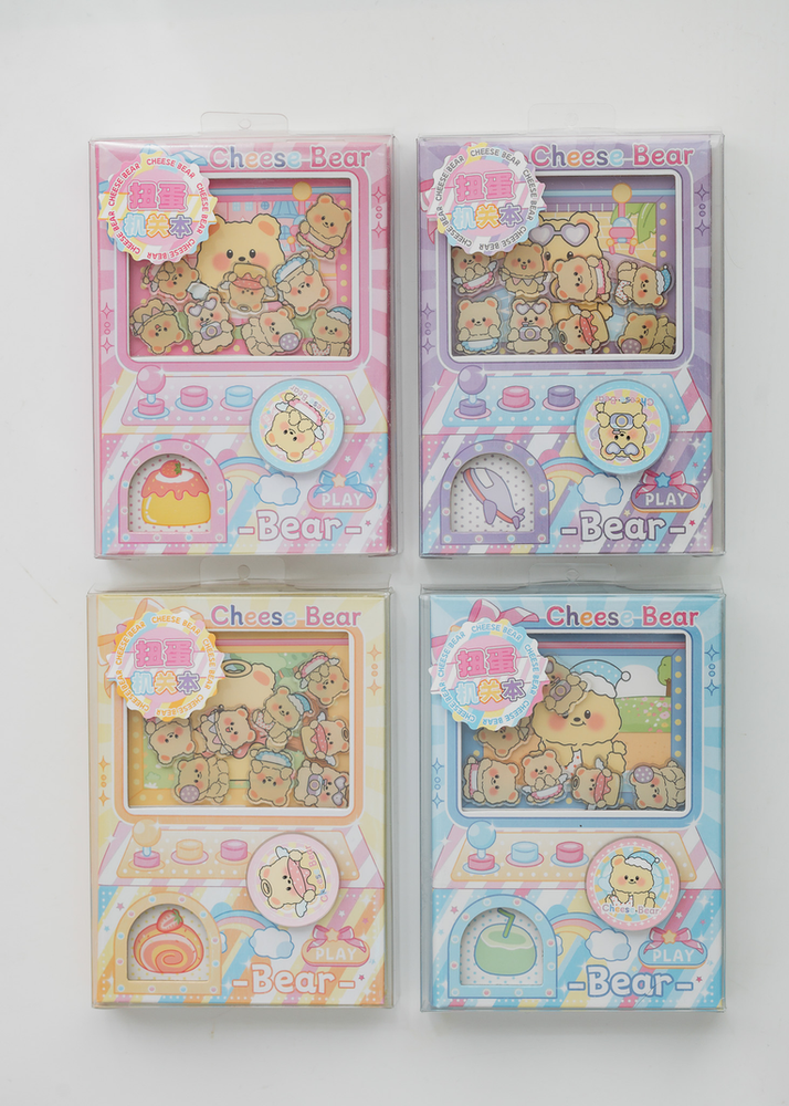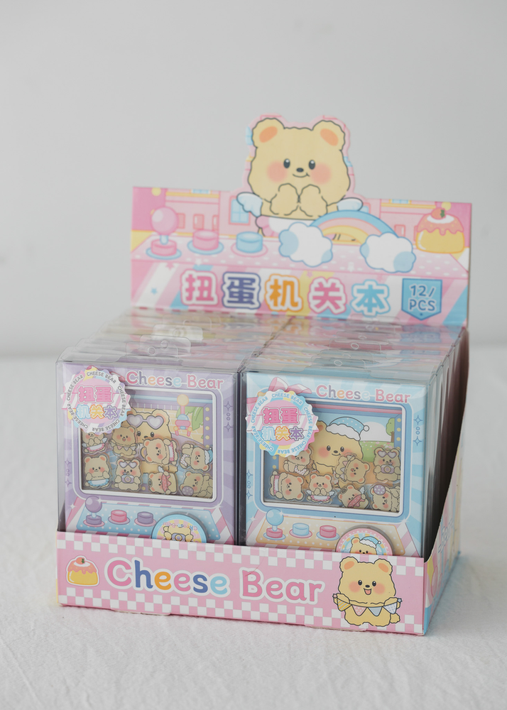 CAJA POR 12 UNIDADES DE ANOTADORES OSITOS CON DISEÑO DE MAQUINA DE PELUCHE. VIENE EN 4 COLORES CON PACKAGING DE PVC.