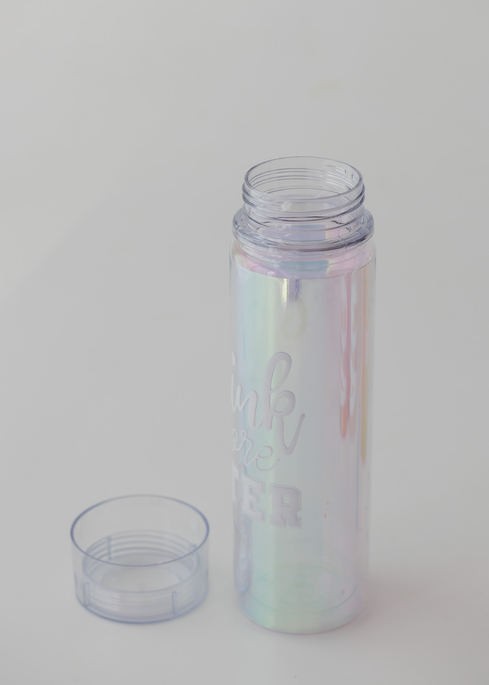 BOTELLA PLASTICA METALIZADA CON TAPA A ROSCA. VIENE EN 4 DISEÑOS.